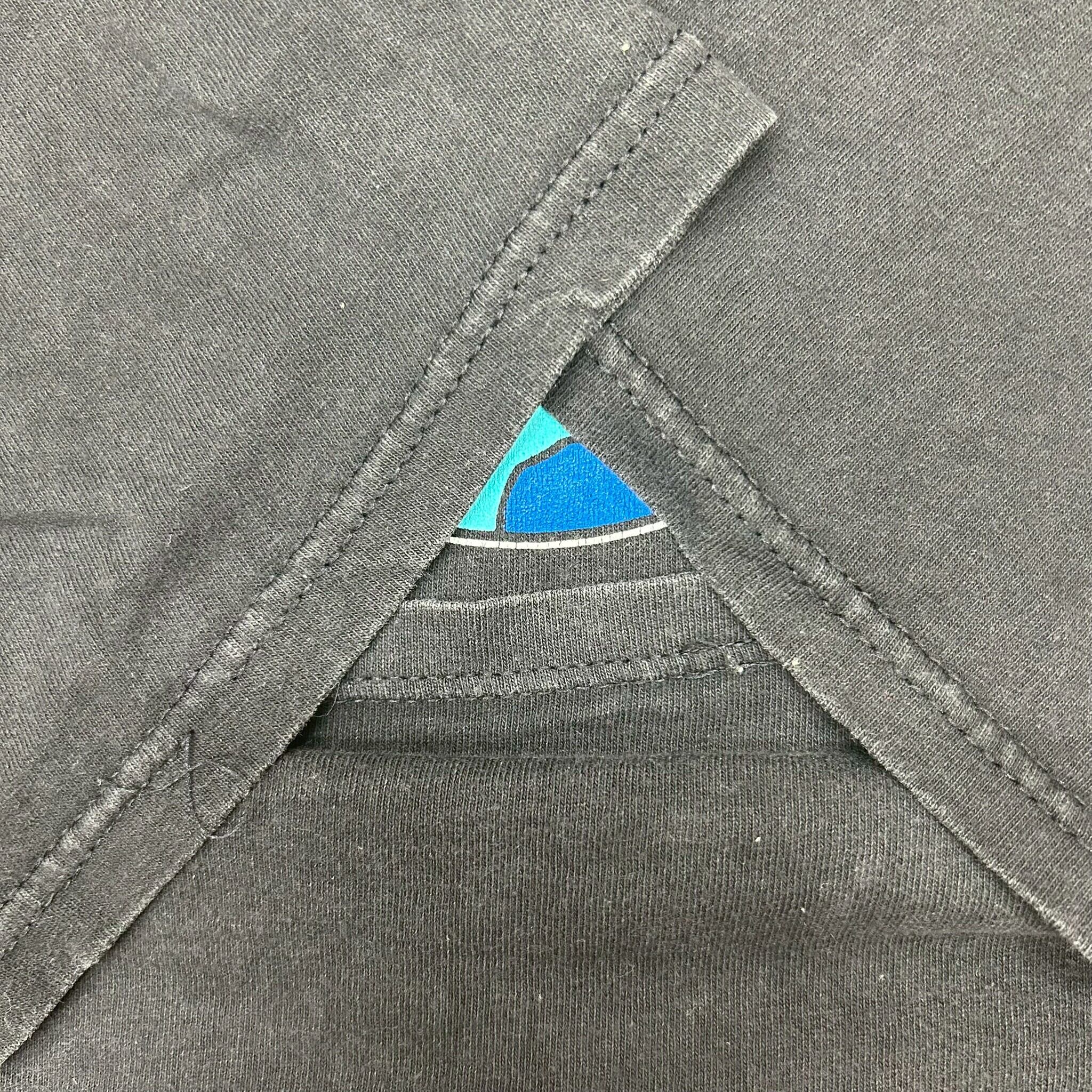 ブラックボディに映える赤とブルーのグローブロゴが目を引く、クラシックな一枚。しっかりとしたコットン生地で、MADE IN U.S.A.のタグ付き。シングルステッチ仕様からも、90sごろのアイテムと推測されます。